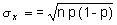 Example: Supposed we tossed a fair coin 10 times. The expected number of heads would be 10(.5) = 5. The S.E. would be the squareroot of (10(.5)(1 - .5)) = 1.6. On one toss the SD would be squareroot of (.5*.5)=.5