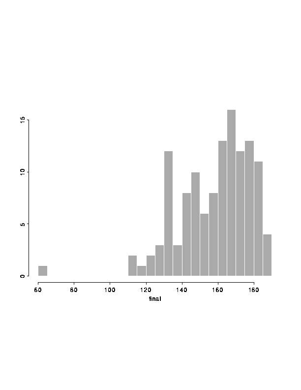 Histogram of points on the Final Exam